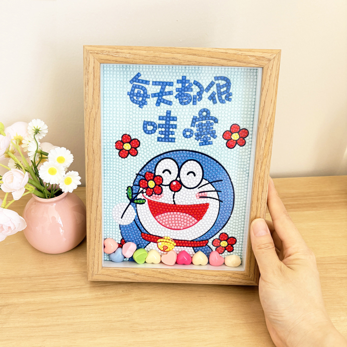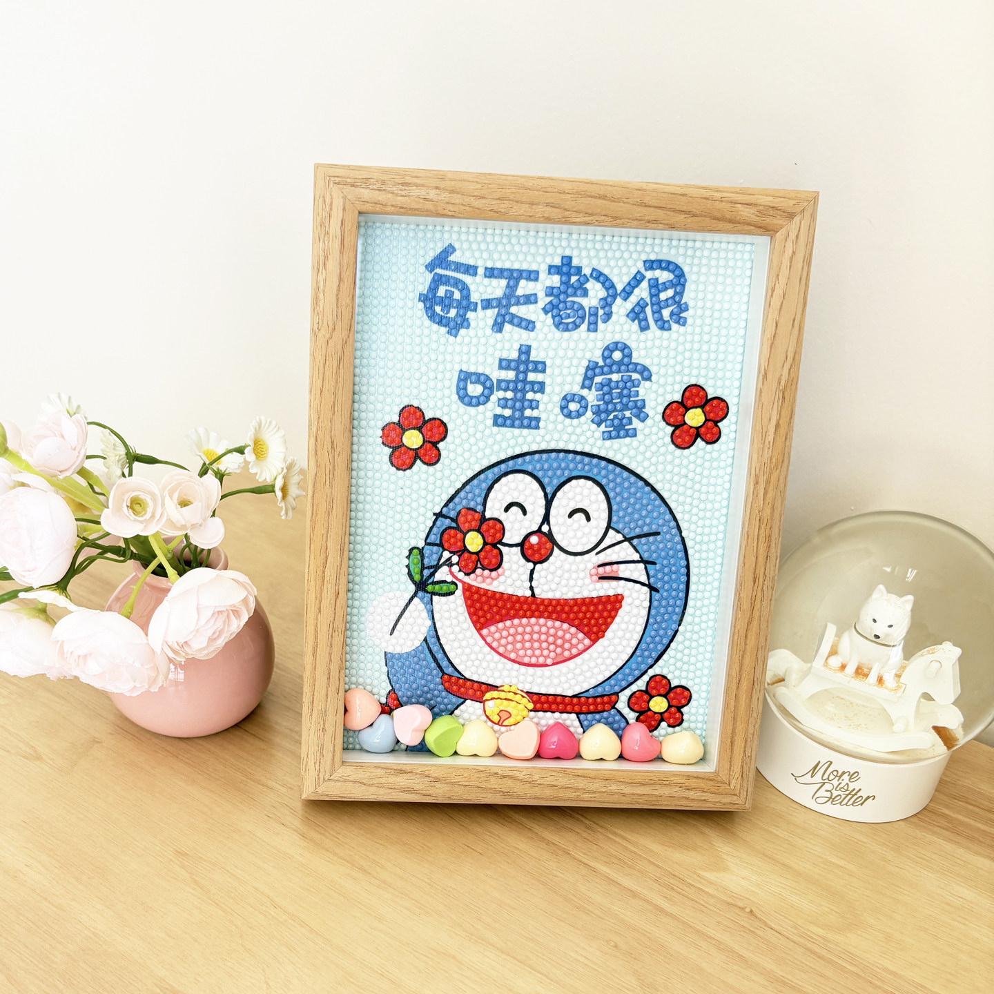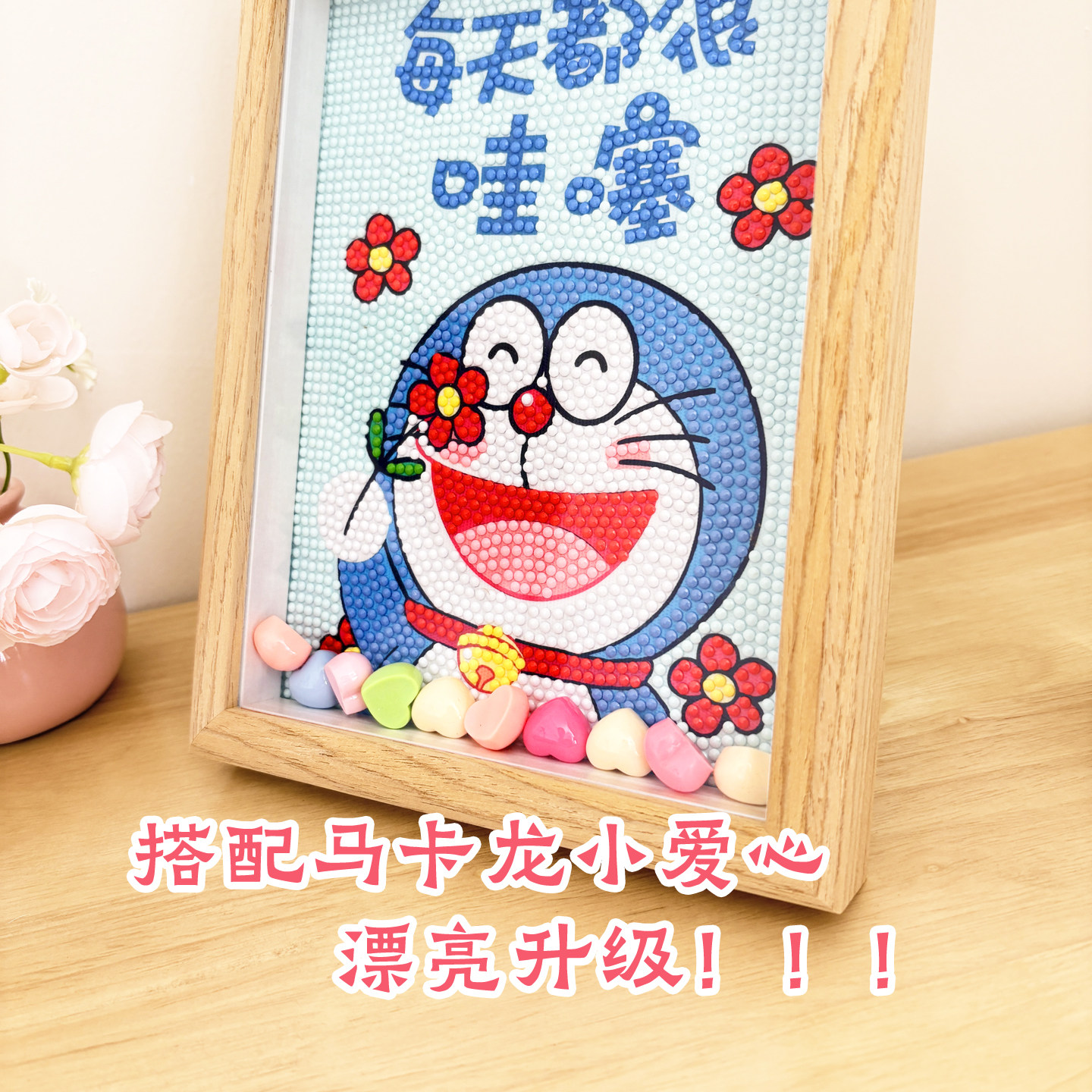 哆啦A梦带框钻石画2026新款蓝胖子儿童十字绣粘贴水晶钻摆台满钻