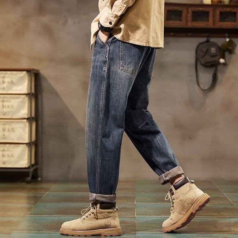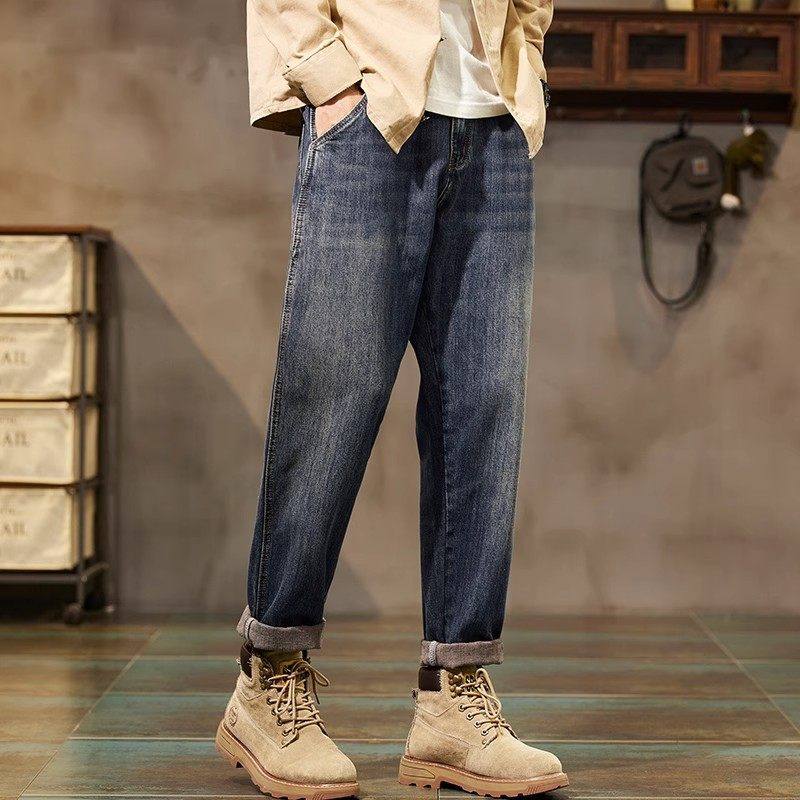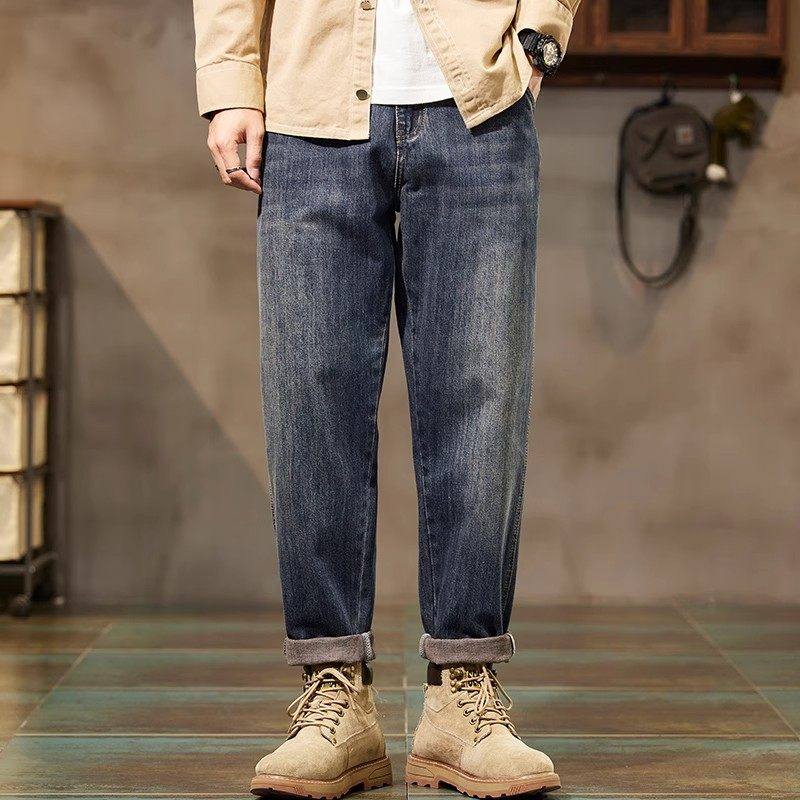 Yishion以纯官方时尚正品牛仔裤男士直筒宽松2025秋冬加绒新款工