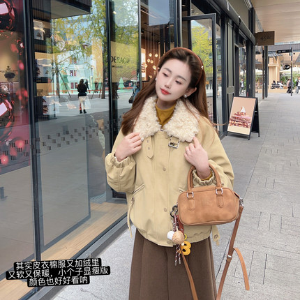 小小家 小个子小码夹棉皮外套短款宽松冬季加绒加厚柔软皮衣夹克