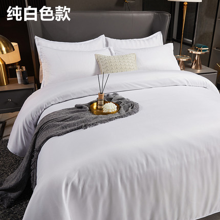 酒店床上用品四件套宾馆民宿纯白色被子被罩被套床单公寓七八件套