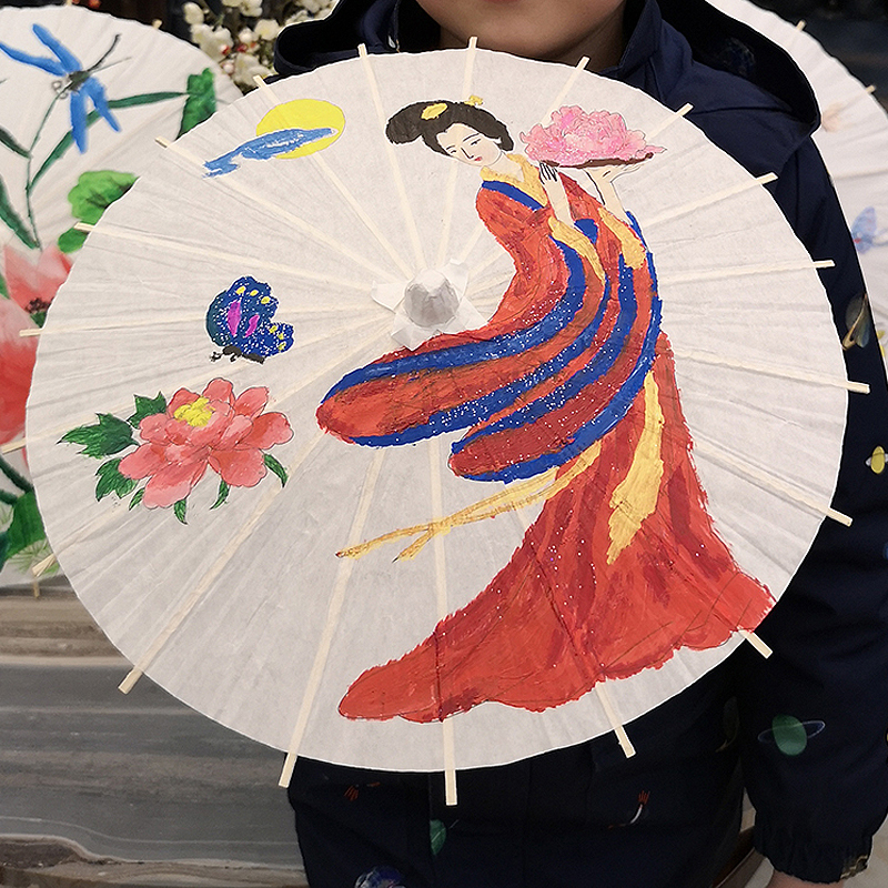 纸伞diy手工绘画古风儿童迷你空白画画材料道具女童白色小油纸伞