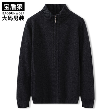 秋冬款加肥大码男装纯棉毛衣开衫