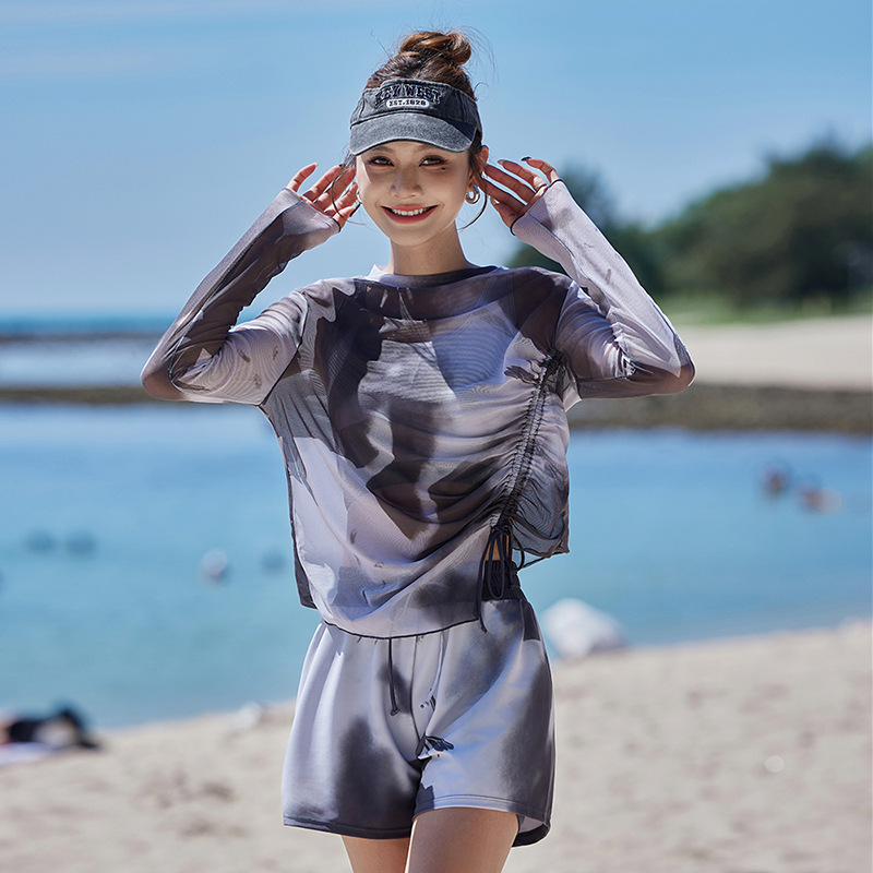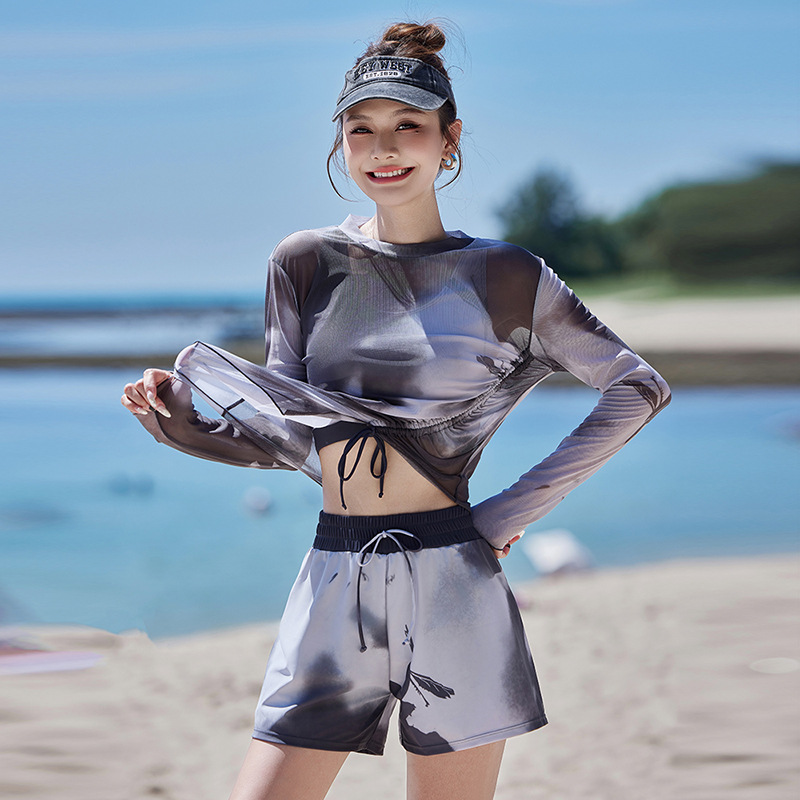 2025新款游泳衣女分体式三件套遮肚显瘦聚拢小胸韩国ins风泡温泉