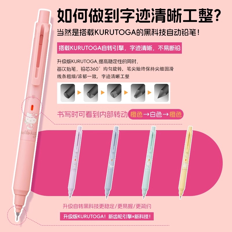 日本UNI三菱自动铅笔0.5mm活动M5-KS自动旋转笔KURUTOGA系列单倍速hb小学生三丽鸥限定黑科技笔甜甜圈旗舰店