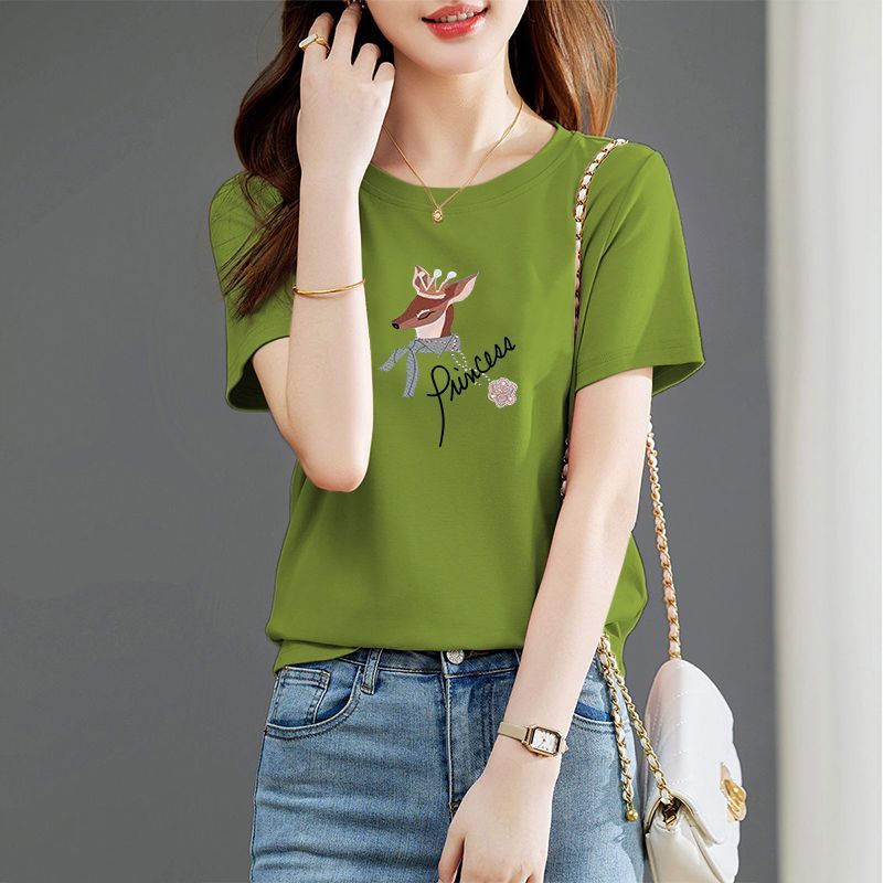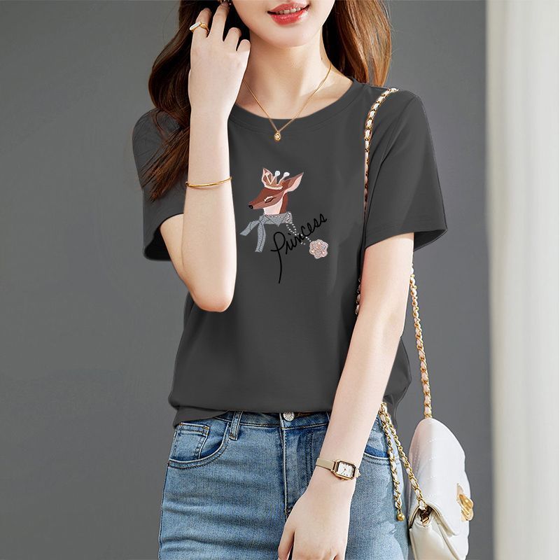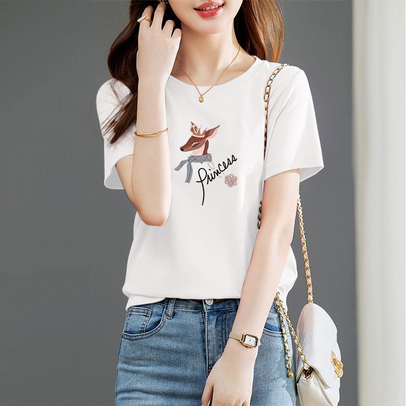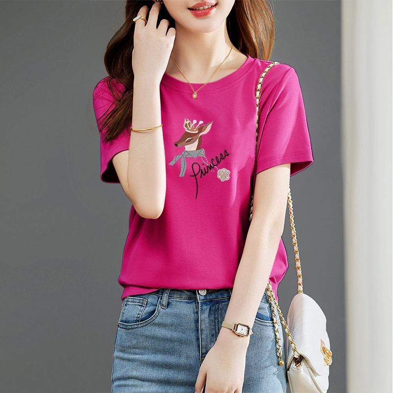 专柜品牌时尚女装夏季纯棉韩版印花气质正肩短袖t恤女修身显瘦潮