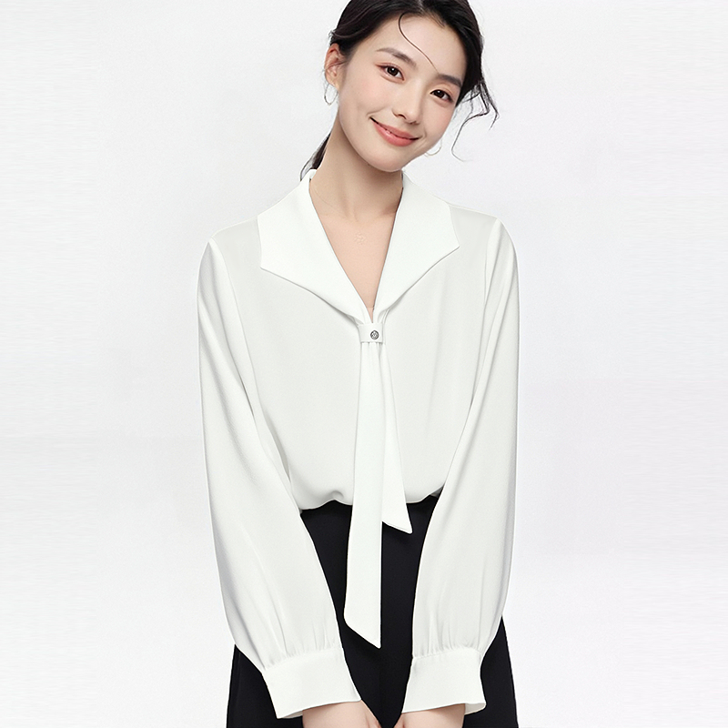 白色衬衫女V领2025新款职业OL面试正装衬衣工作服长袖高级感上衣