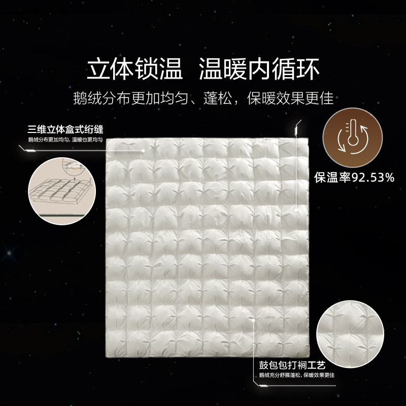 罗莱家纺95白鹅绒被羽绒冬被子四季通用加厚保暖被芯春秋被结婚