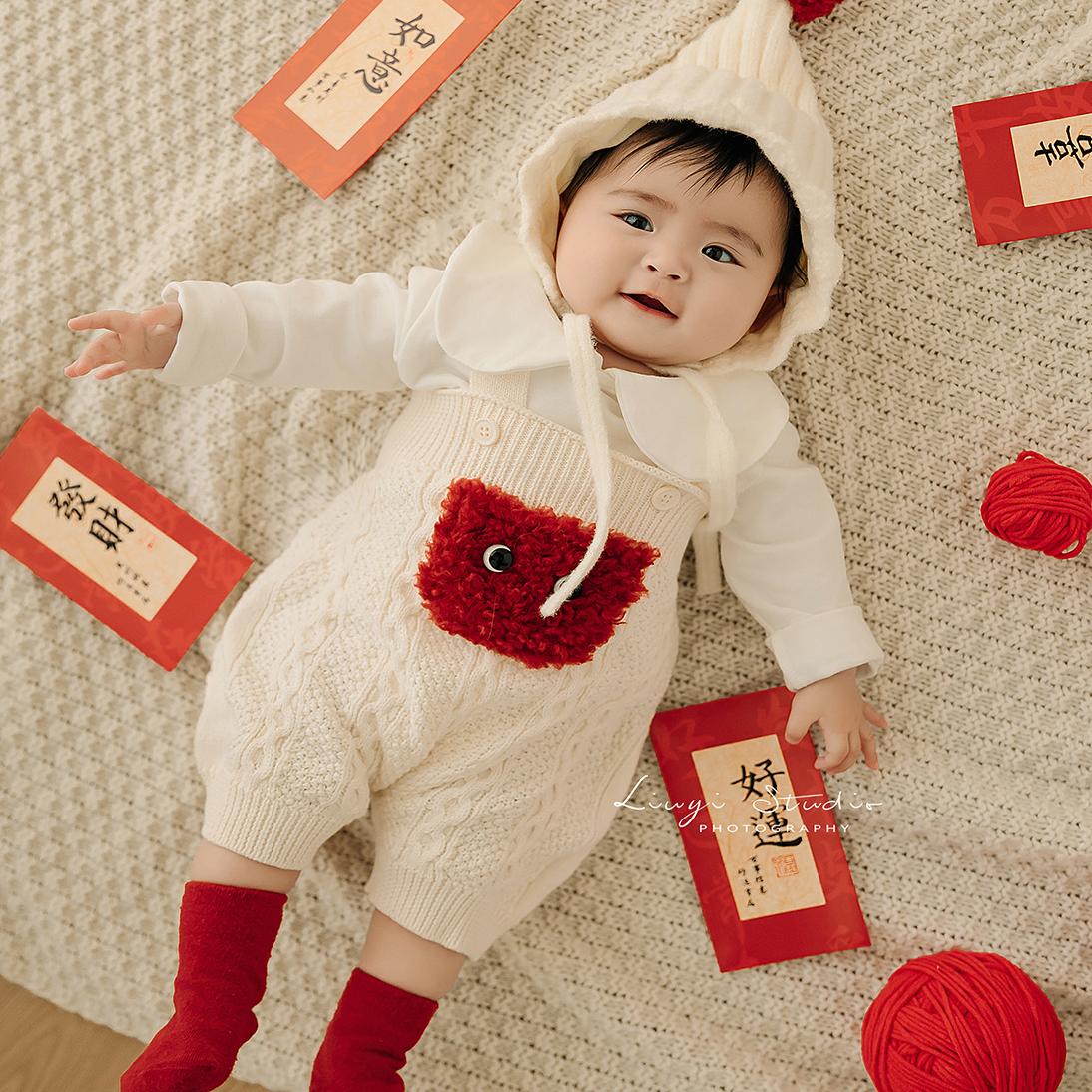 儿童摄影主题服装新年主题有钱任性对联宝宝百天照周岁照拍照服装