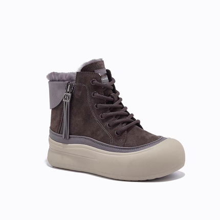 复古真皮兔毛厚绒增高5厘米保暖雪地靴防滑防水拉链高帮女棉鞋
