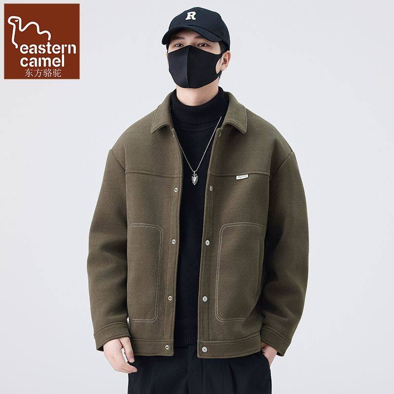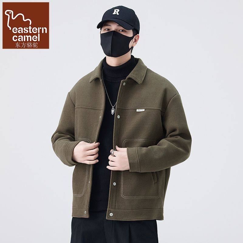 秋冬新款韩版男士百搭休闲时尚宽松保暖树皮绒辑明线翻领夹克外套