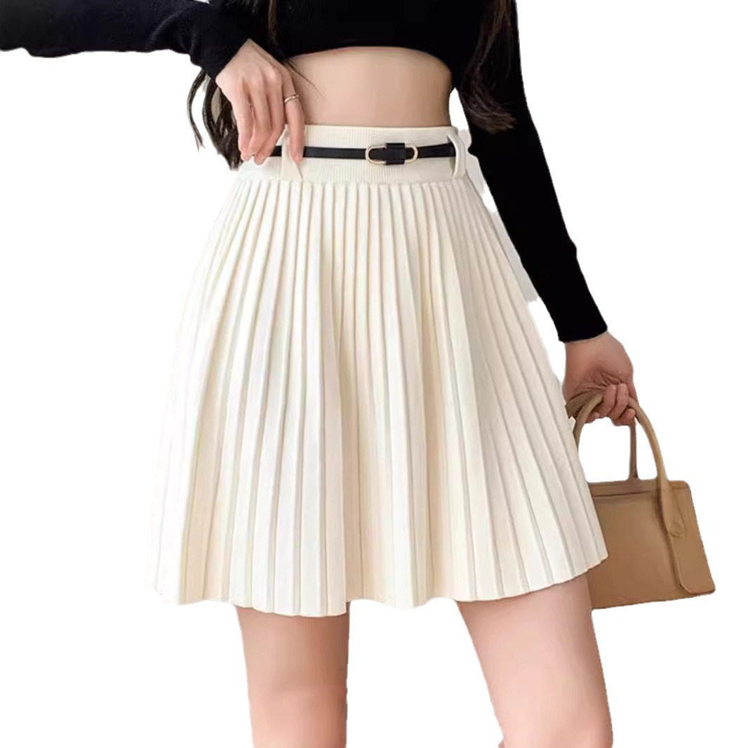 百褶裙女赠腰带2025新款春秋高腰a字短款显瘦松紧腰半身裙针织