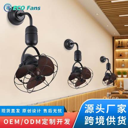 跨境新款创意摇头吊扇带笼爆款吧台生活阳台过道吸顶墙壁两用风扇