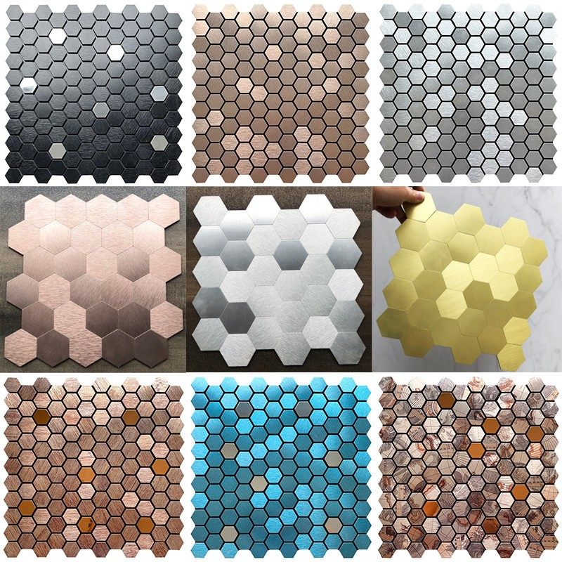 六角形金属铝塑板马赛克自粘贴客厅背景墙KTV吧台瓷砖六边形墙贴
