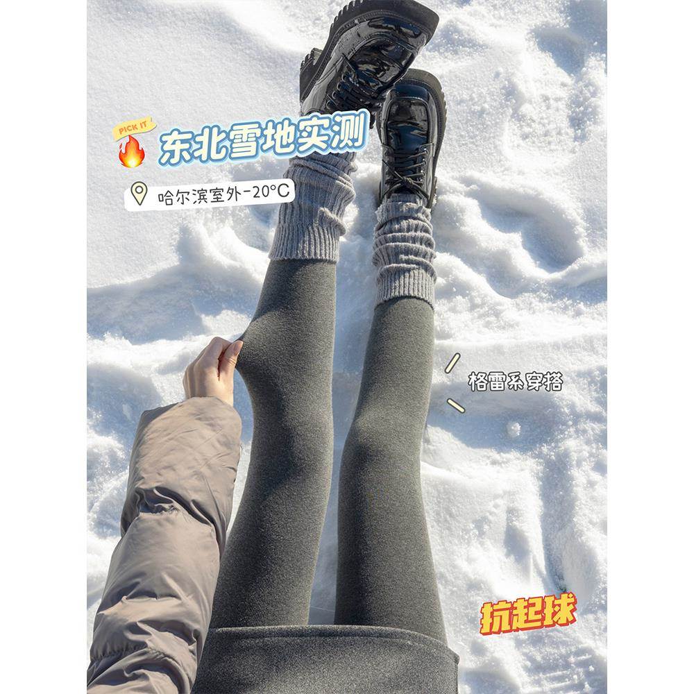 巨无霸连裤袜女冬季加绒加厚外穿燕麦色九分踩脚打底裤