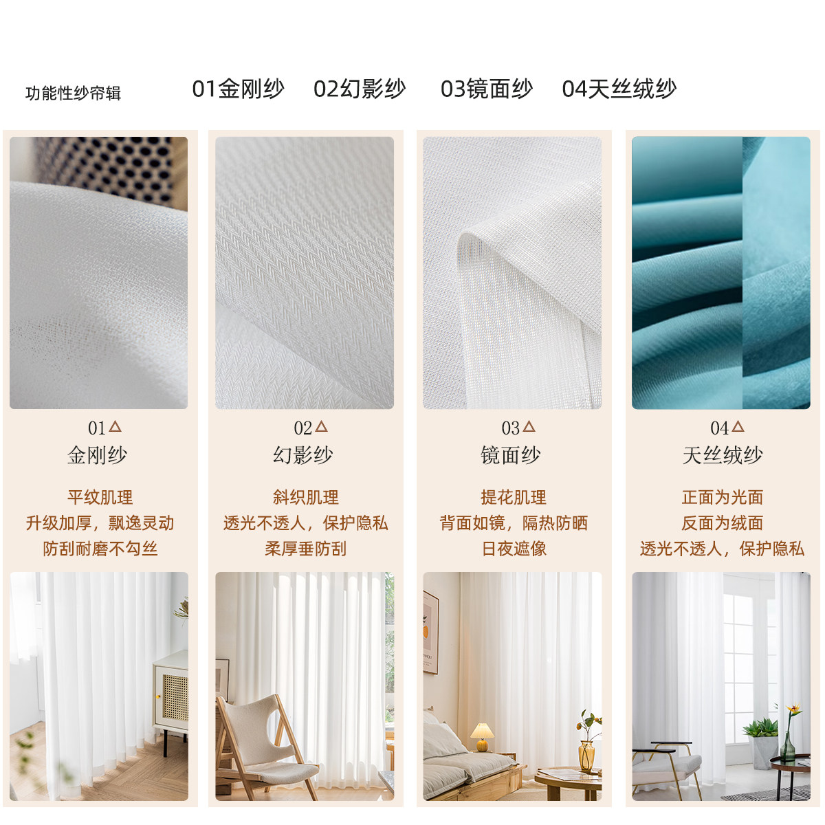 耐磨防刮透光不透人纱帘