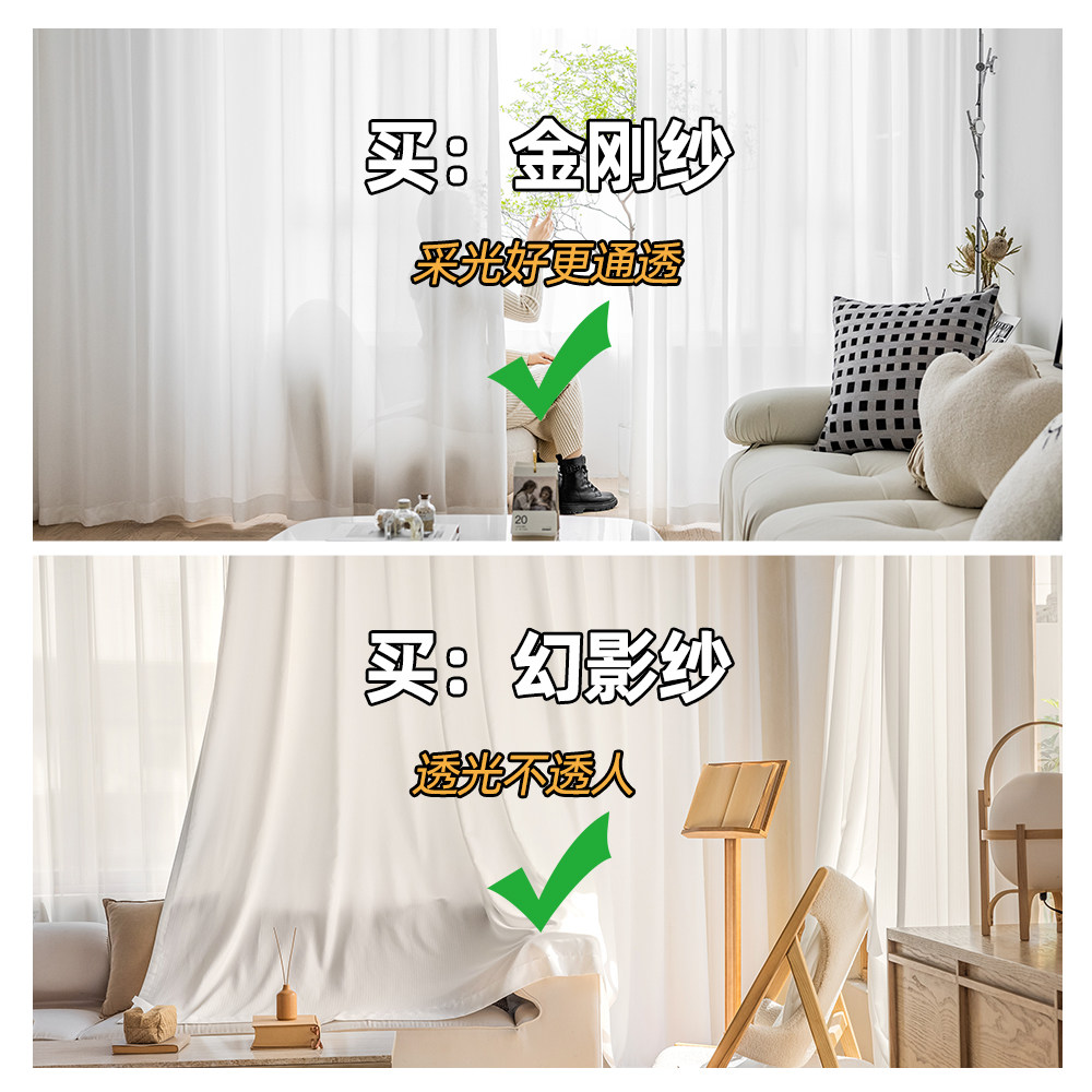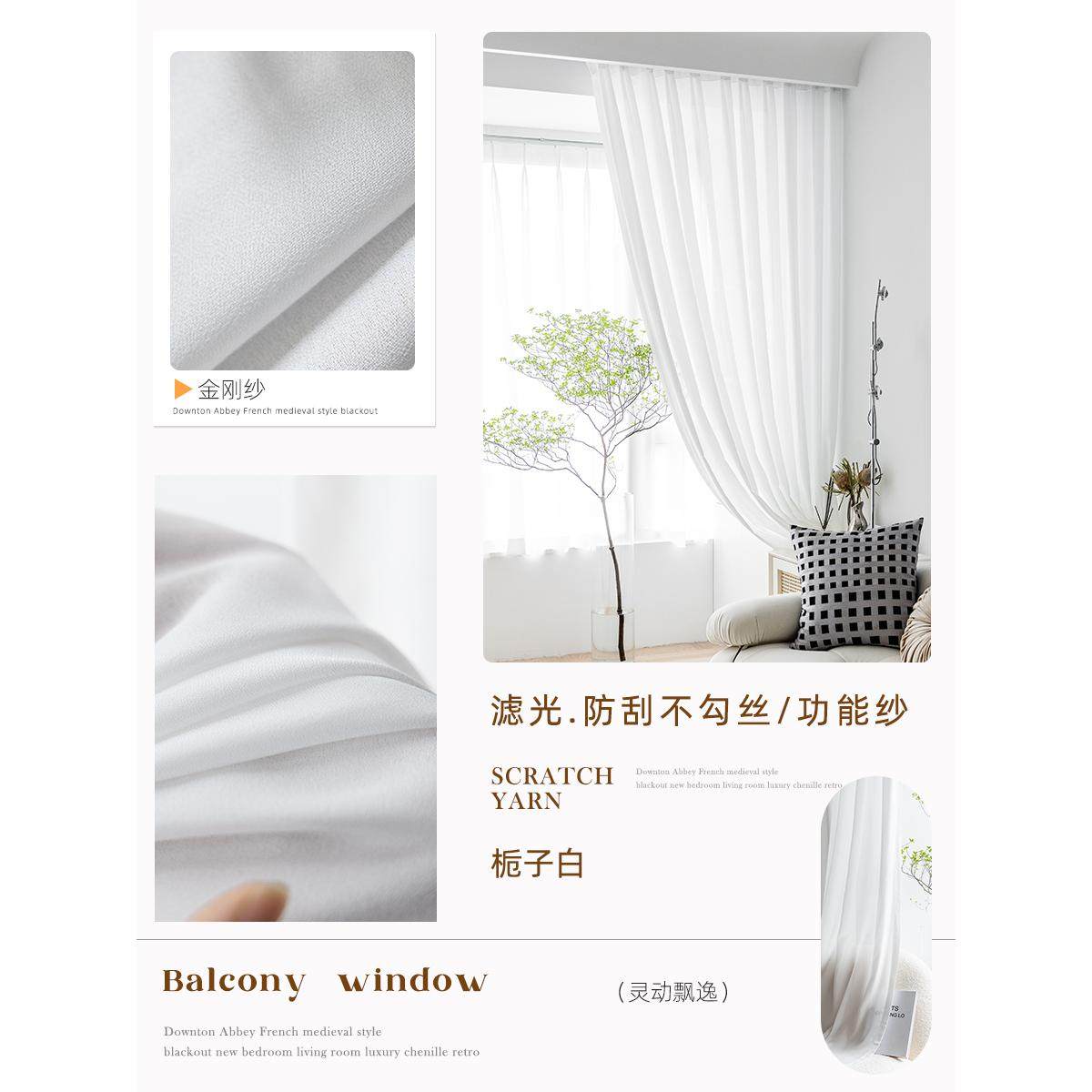 白色幻影阳台纱帘轻奢透光不透人窗帘加厚防晒窗纱客厅卧室飘窗