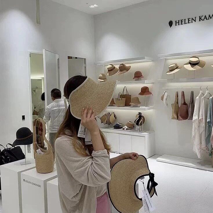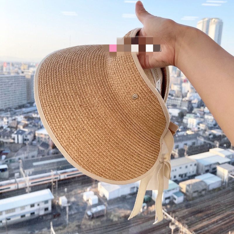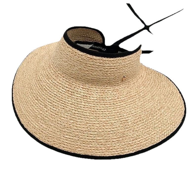 日系大檐细辫拉菲草空顶帽夏季无顶遮阳帽女可折叠海边沙滩太阳帽