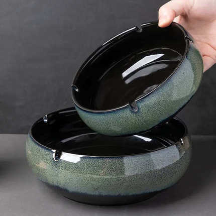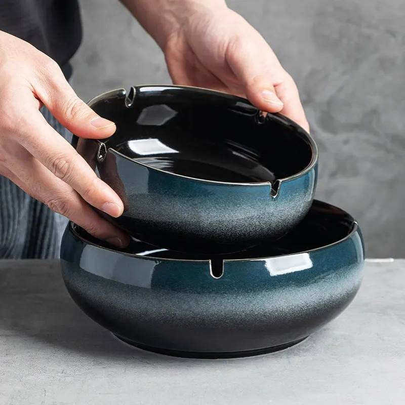创意烟灰缸大号超大中式个性陶瓷烟缸家用客厅办公室防风烟灰缸