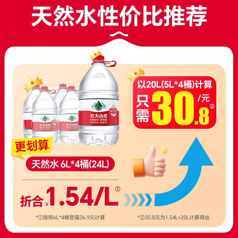 农夫山泉6L*4桶整箱家庭大瓶桶装水天然弱碱泡茶饮用非5升矿泉水