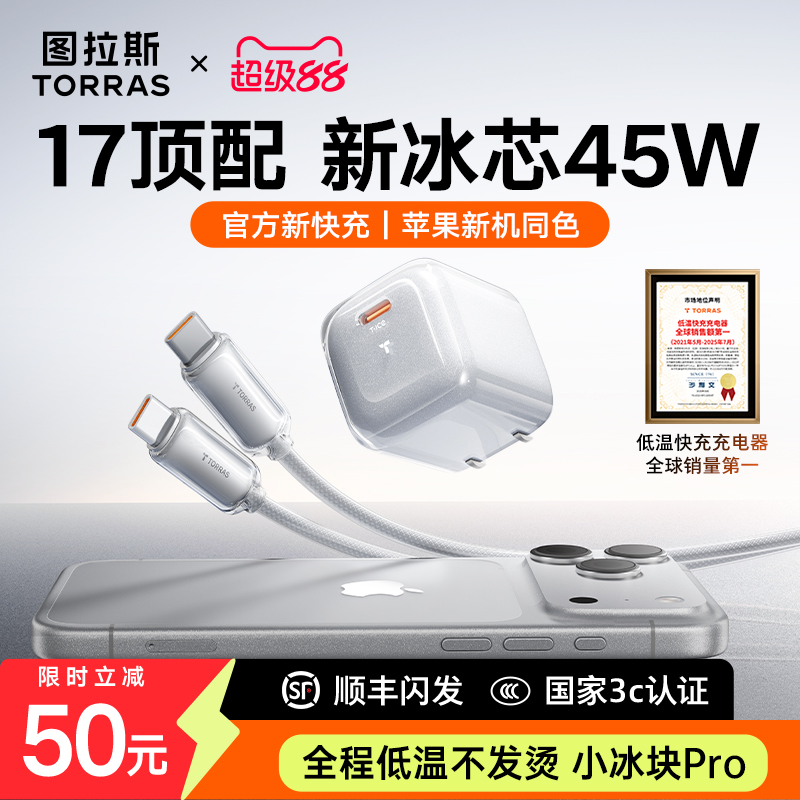 小王子联名|图拉斯小冰块Pro新款45W/40W 适用苹果17Promax充电器快充16数据线手机PD插头air
