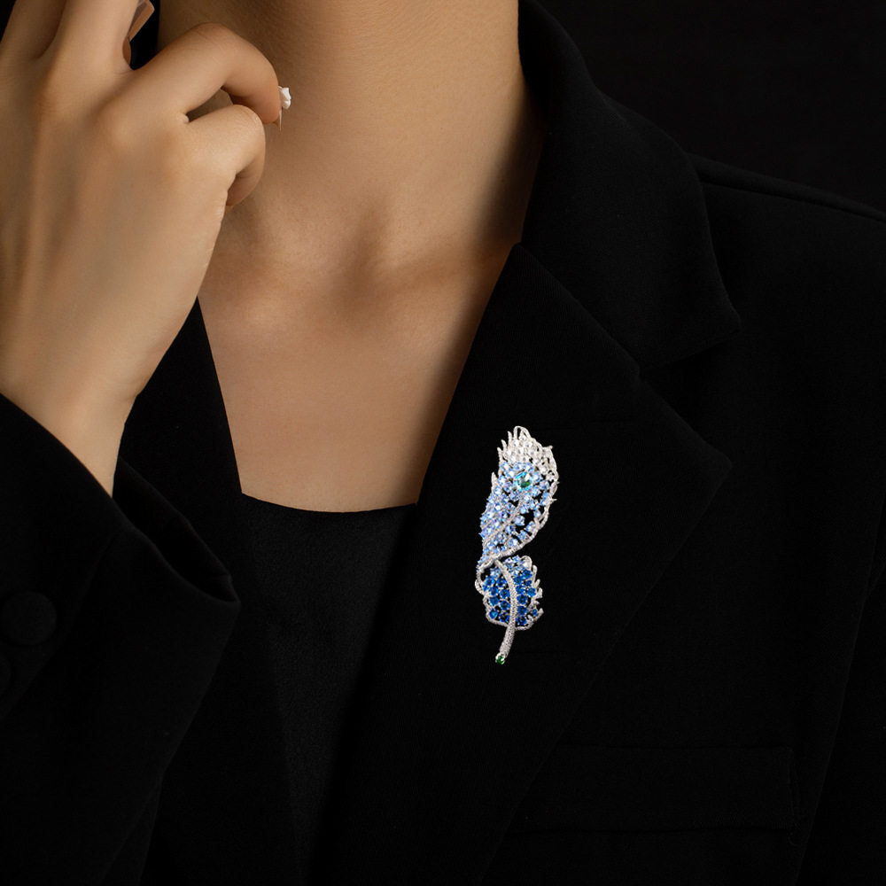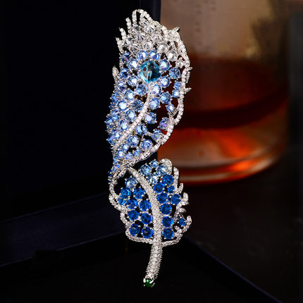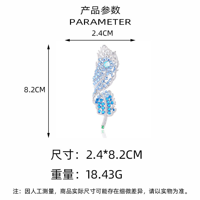新款秋冬重工羽毛胸针优雅大气满锆精致胸花西装礼服高档别针配饰