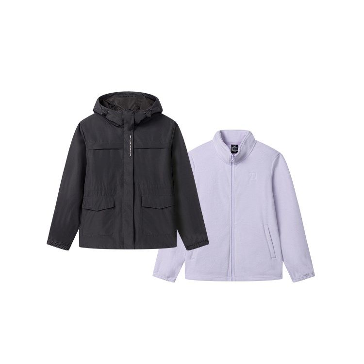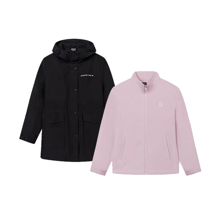 361加绒加厚风衣女正品冬季新品连帽绒里外套保暖361冲锋衣夹克女