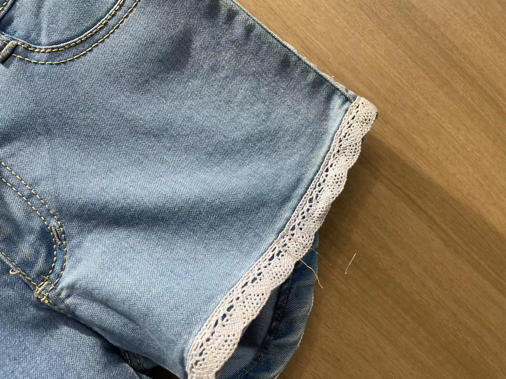 蕾丝边牛仔短裤女低腰宽松可爱短裤子2025夏装新款大码女装显瘦潮