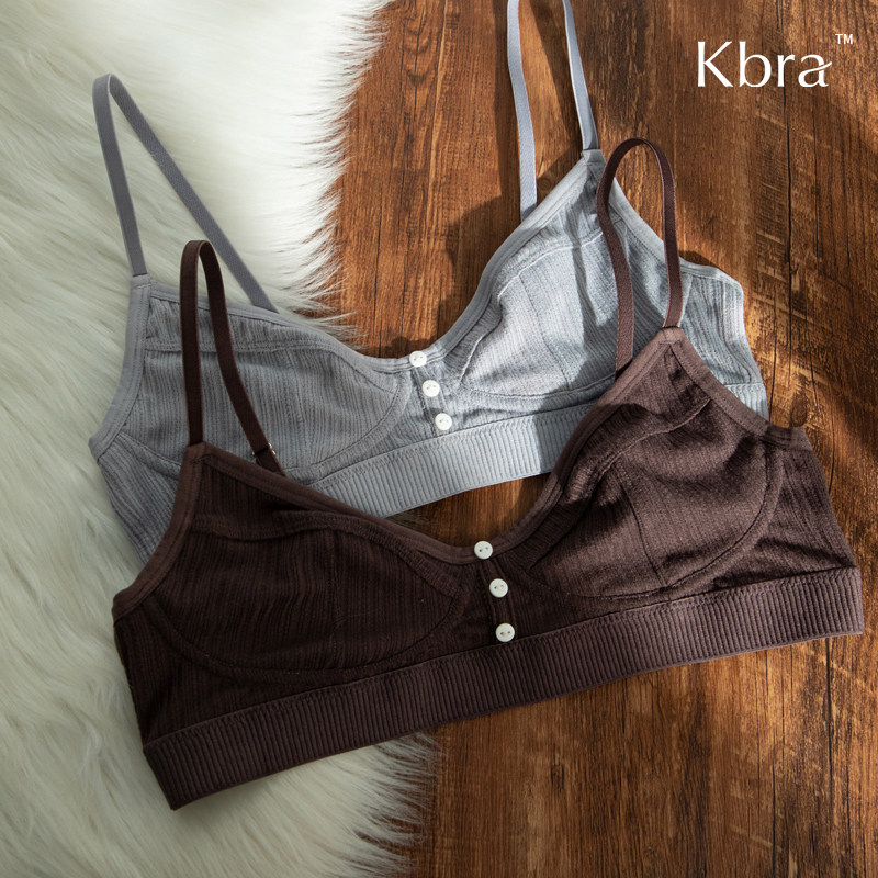 Kbra纽扣罗纹提花内衣女