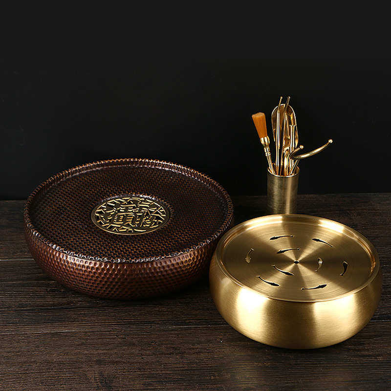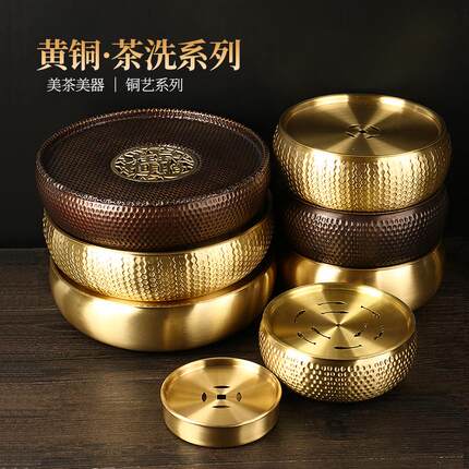 黄铜茶洗茶盘 家用建水铜罄静心钵水盂茶渣缸纯黄铜人气茶杯洗碗