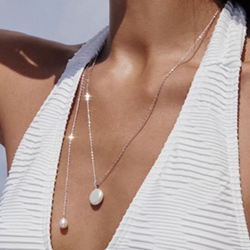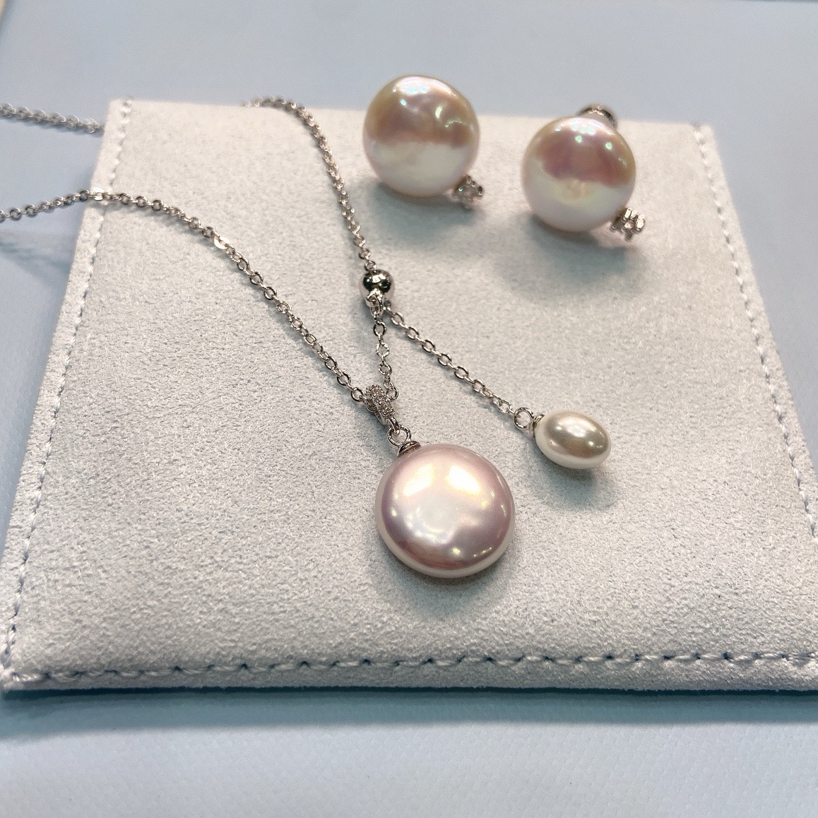 [新品]何家925纯银纽扣珍珠长项链耳钉女轻奢高级感锁骨链耳环