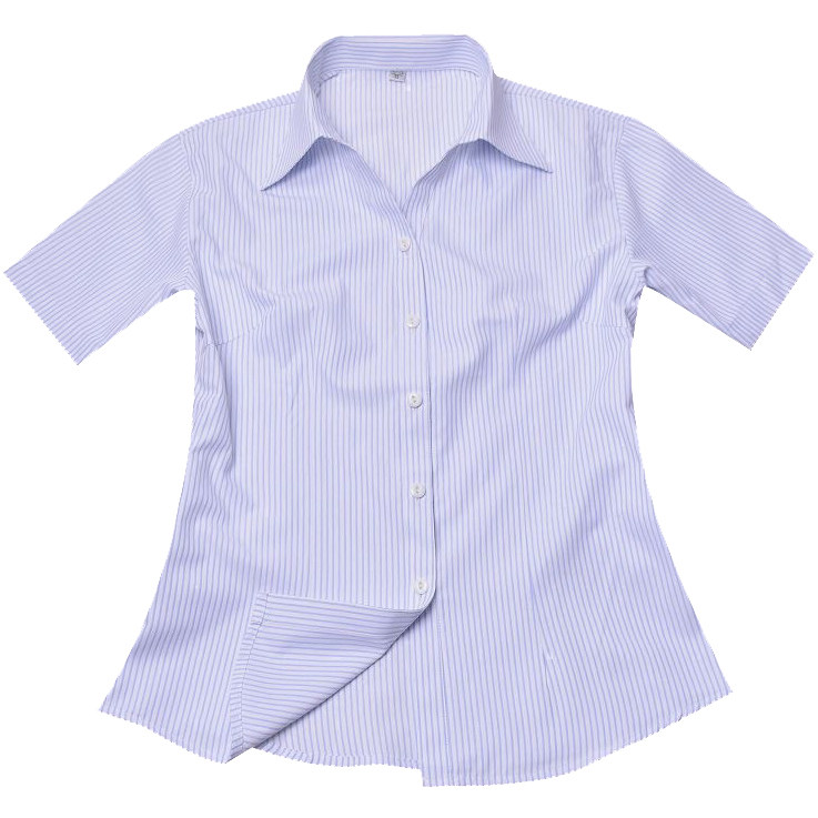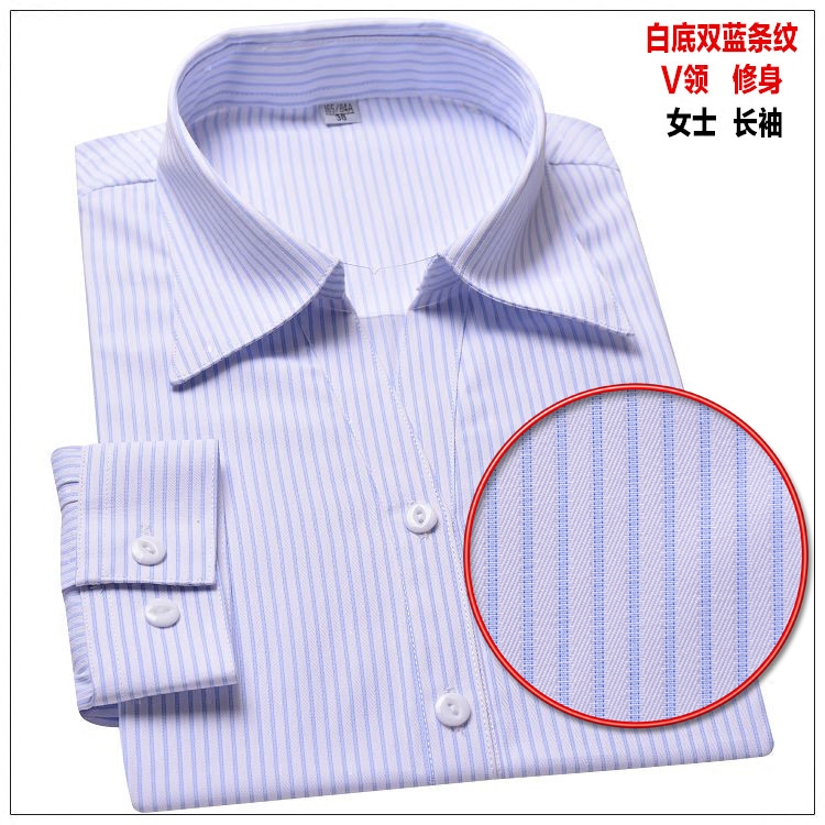 白底蓝条纹女士衬衫银行工作服夏季短袖通勤工装V领修身半袖衬衣