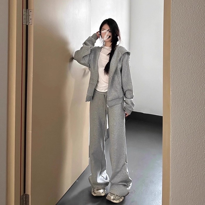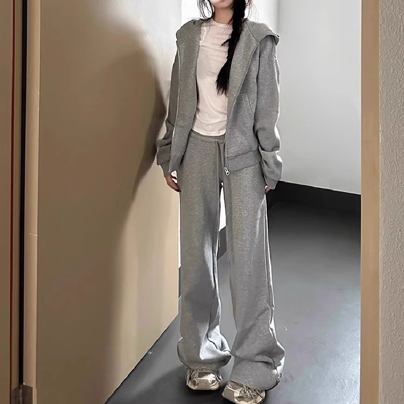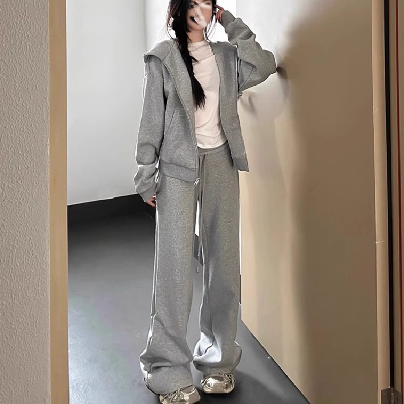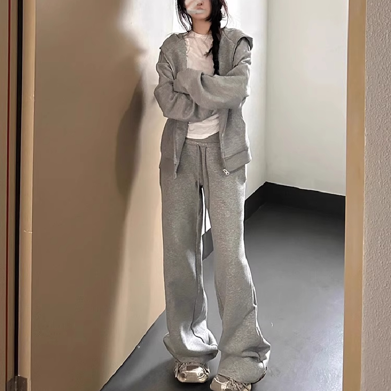 韩系显瘦运动套装女春秋季宽松开衫卫衣时尚阔腿裤休闲两件套学生