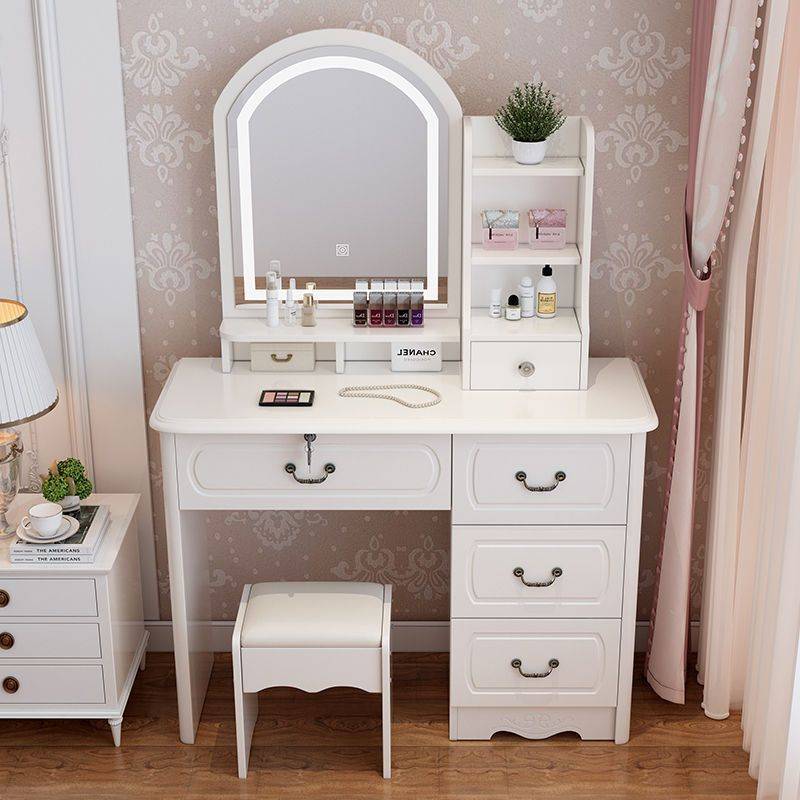 欧式梳妆台小户型卧室经济型现代简约收纳柜一体带灯化妆桌