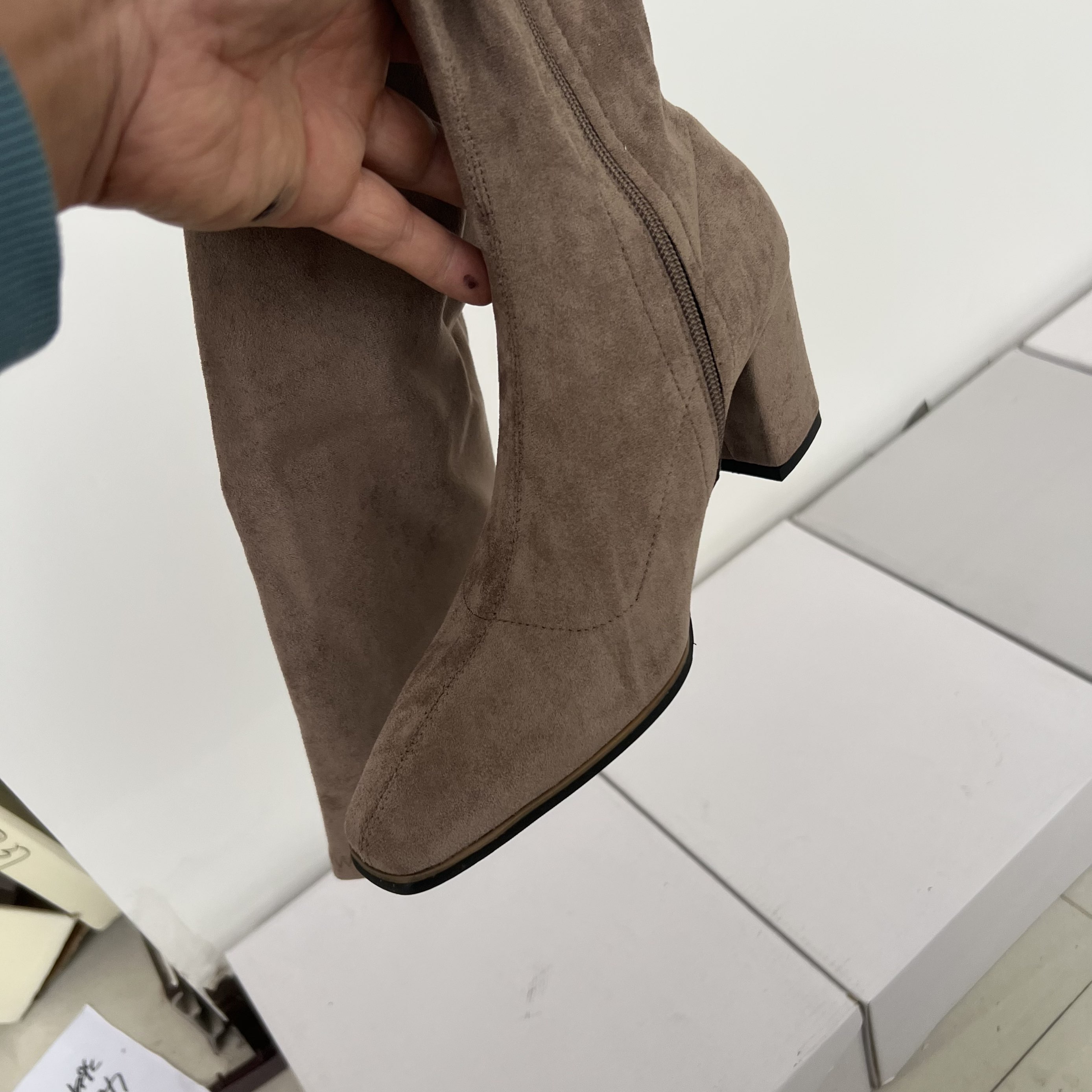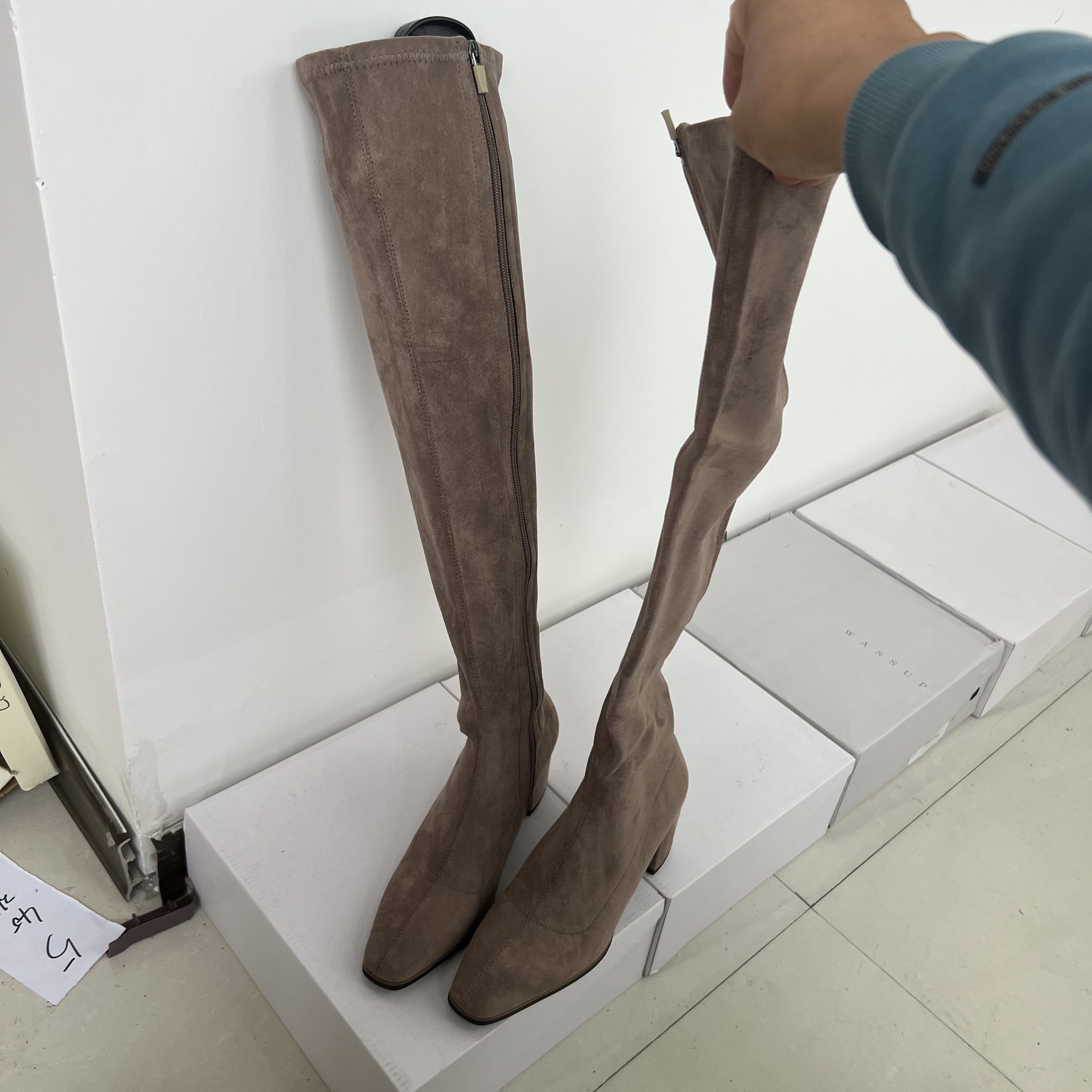 38码韩国绒面显瘦过膝长靴小小苏秋季休闲粗跟方头侧拉链瘦瘦靴