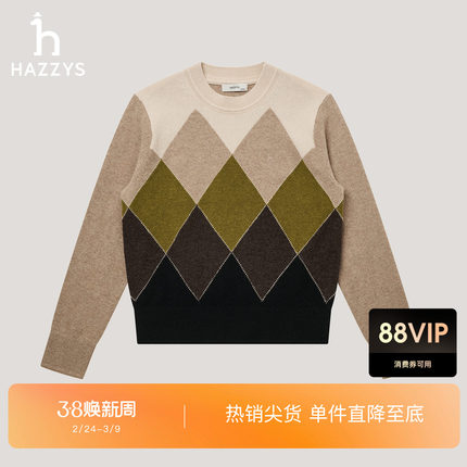 【商场同款】Hazzys哈吉斯菱形格针织羊毛衫女年秋季毛衣
