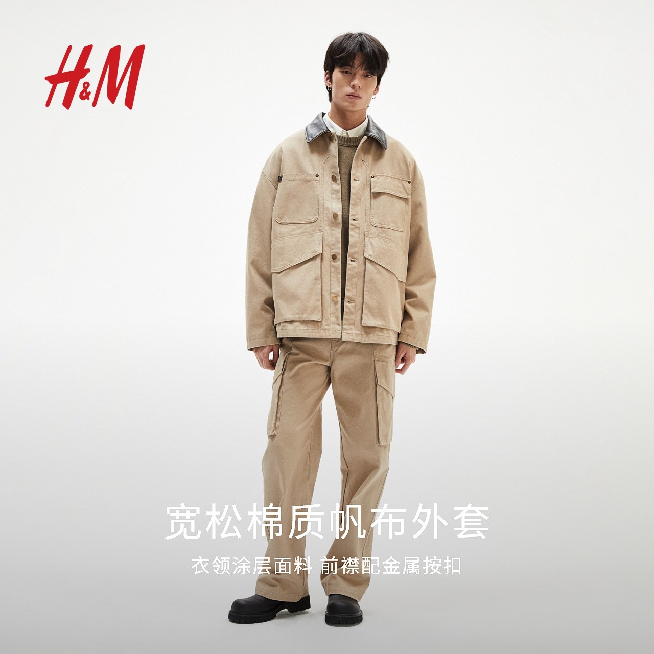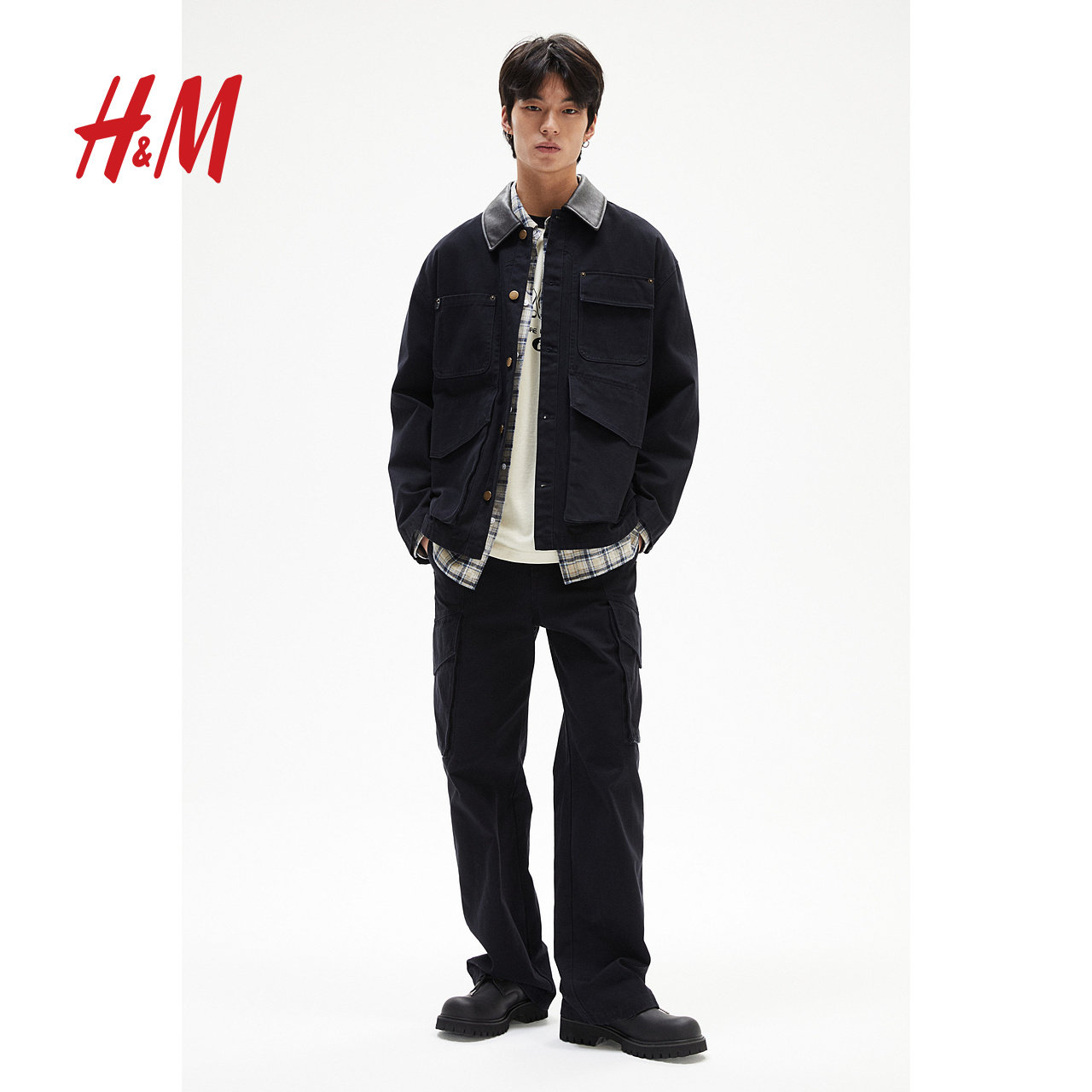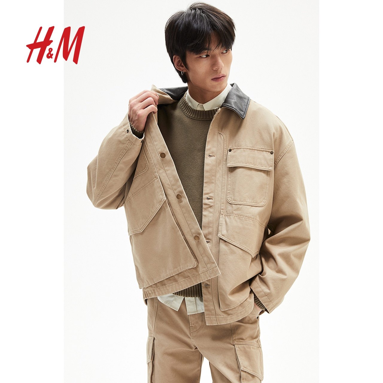 HM男装夹克冬季底特律翻领宽松巴恩风工装外套1252098