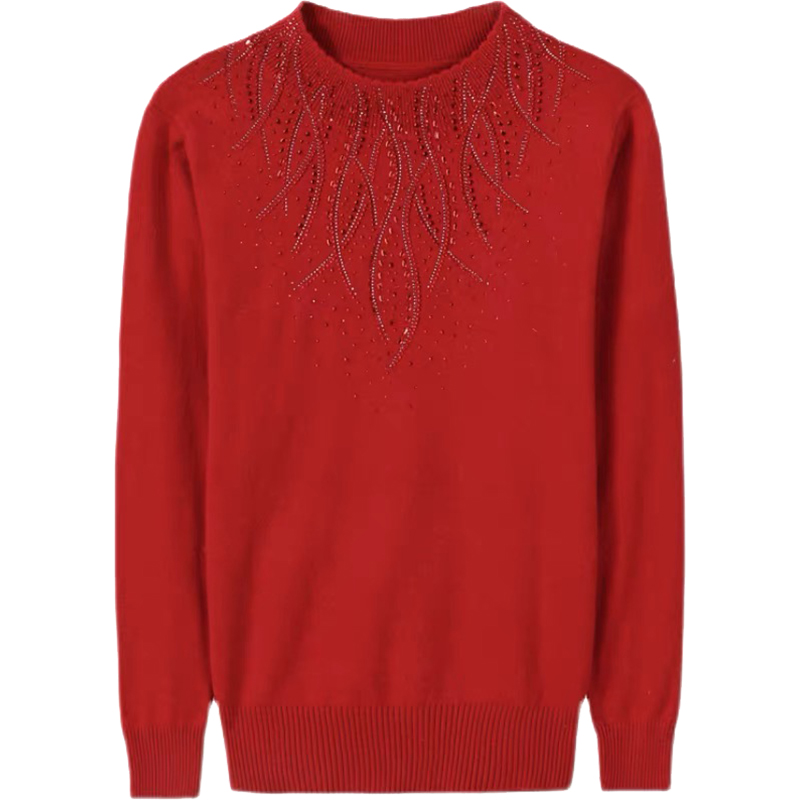 中老年女妈妈春秋上衣时尚洋气打底衫宽松新款小衫薄款带钻毛衣女