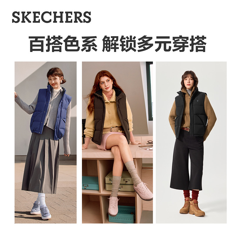 斯凯奇2025秋冬女立领羽绒服外套马甲防泼水加绒保暖休闲背心外套