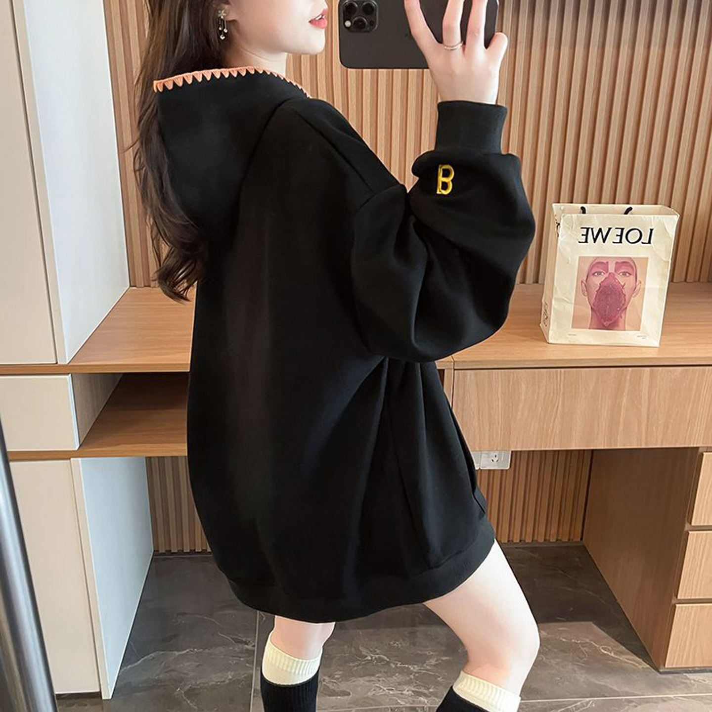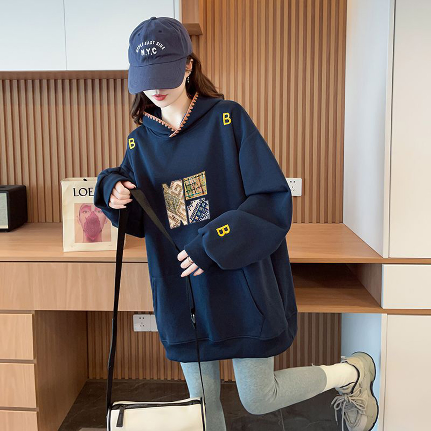 几何图案连帽刺绣卫衣女韩版春秋季小众设计感中长款巨好看的上衣
