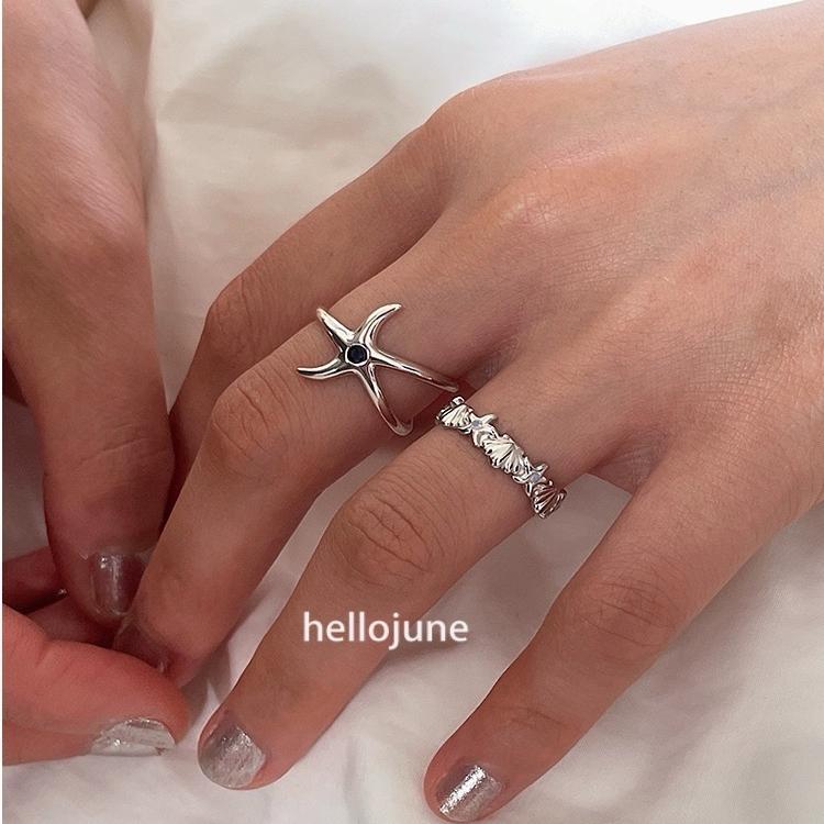 hellojune 夏日沙滩 海星造型开口戒指 贝壳银戒 指环