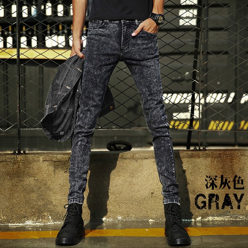 修身小脚男款裤子弹力加绒休闲牛仔裤男士黑色秋冬款韩版潮流男裤