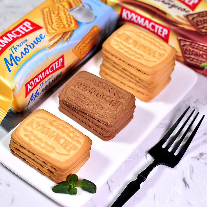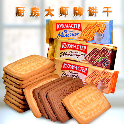 俄罗斯进口厨房大师牌巧克力牛奶香酥饼干学生儿童宝宝早餐零食品