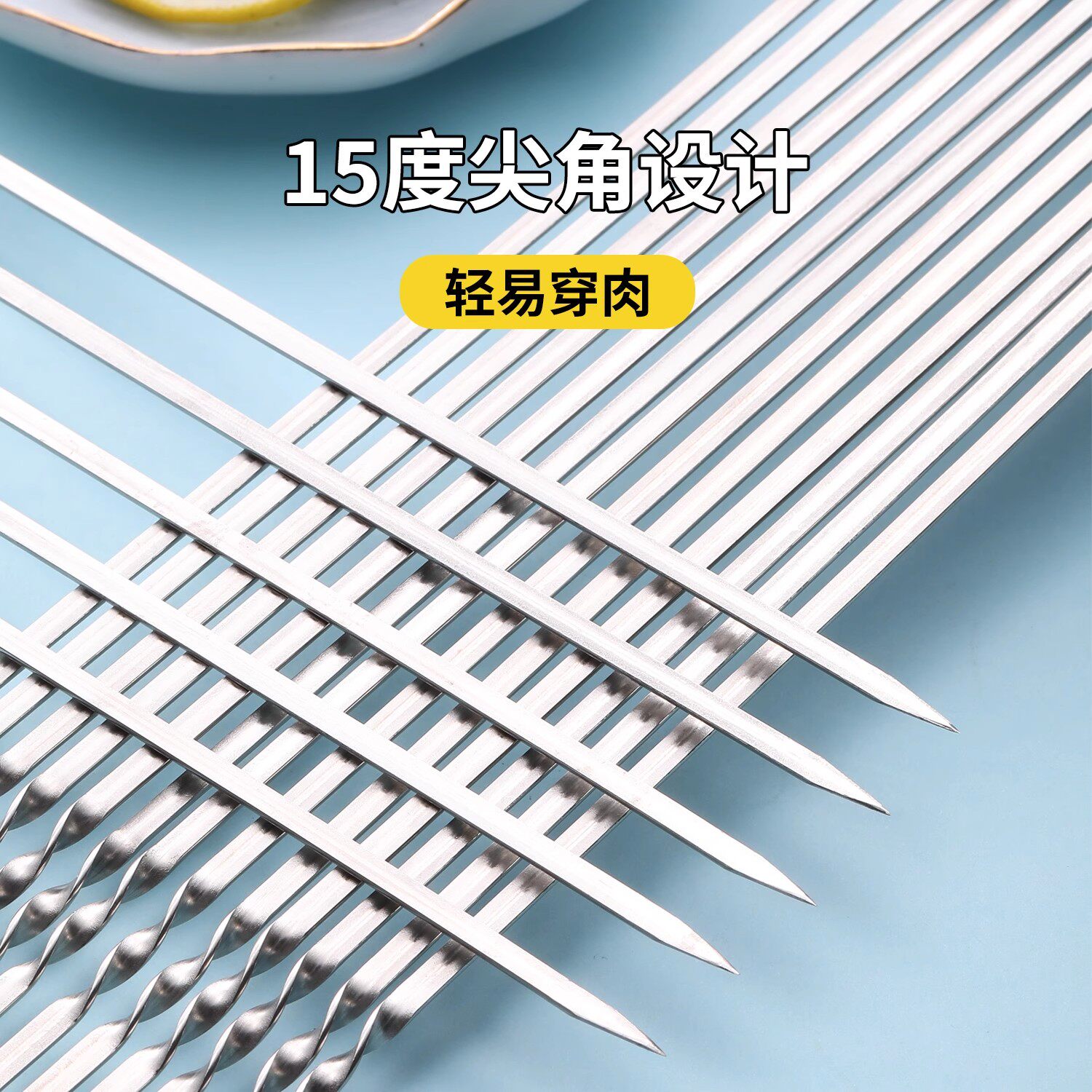 烧烤签子不锈钢扁签烧烤用具烤针羊肉串铁签子烤肉签串针刚签钎子