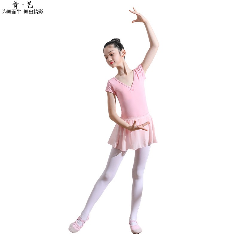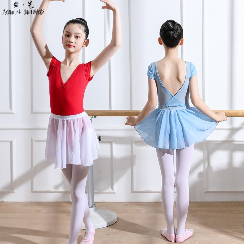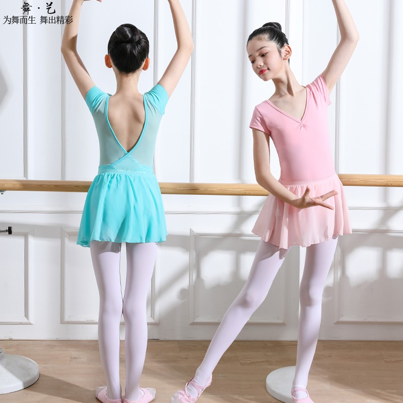 新款网纱夏季女童练功服芭蕾舞裙舞蹈服儿童女短袖纯棉幼儿体操服