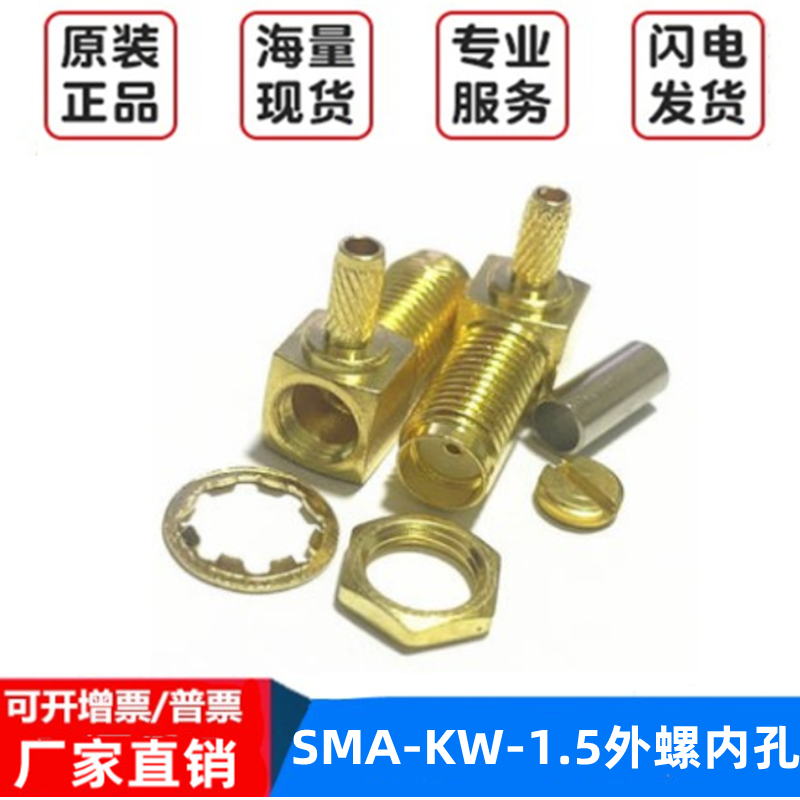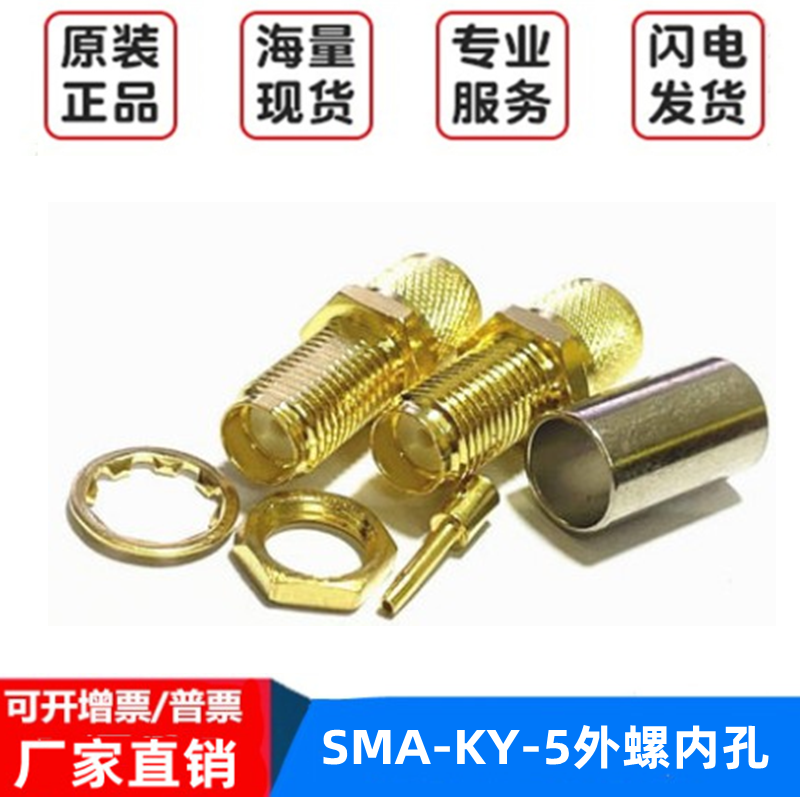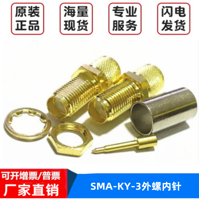 SMA射频连接器 SMA-KY-1.5-3-5母头外螺纹內孔内针压焊接馈线接头