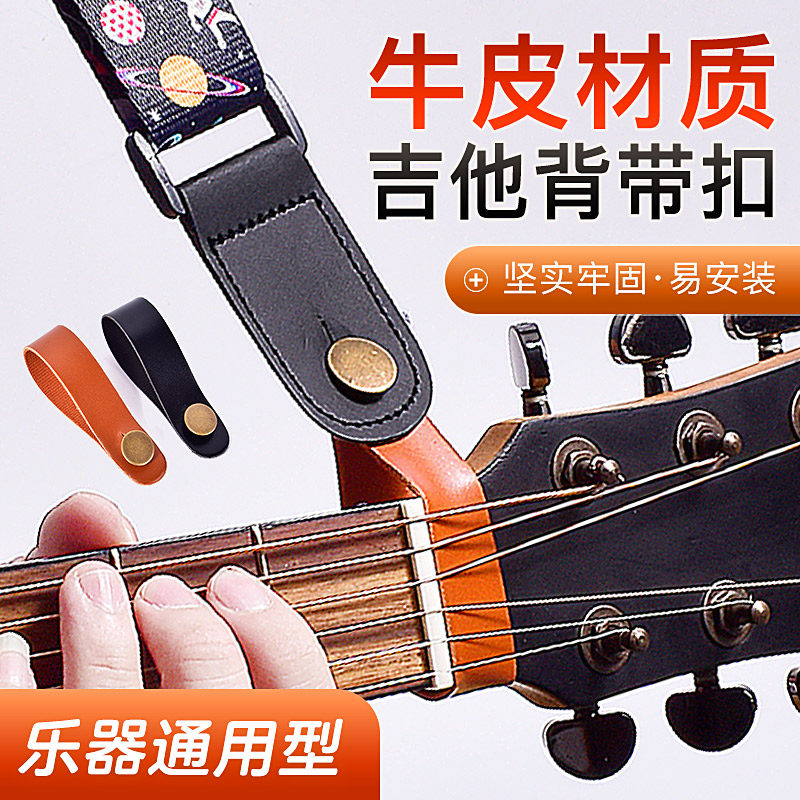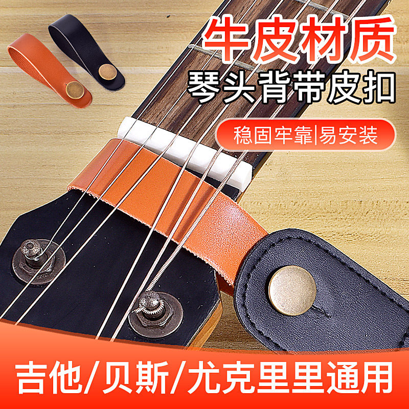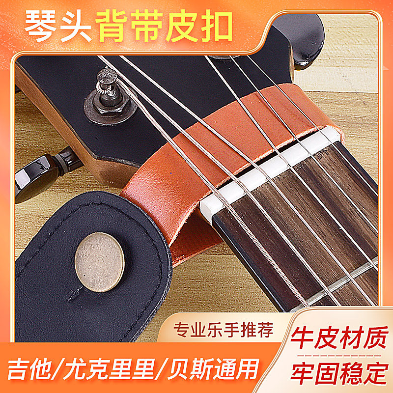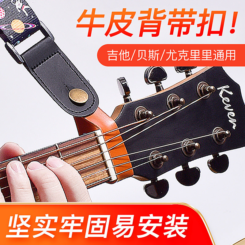 吉他琴头牛皮背带扣钉尤克里里民谣木电古典吉他背带免绳子绑绳带