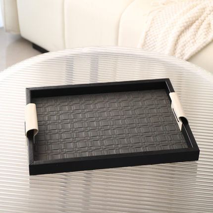 轻奢客厅托盘创意高档黑色皮革香薰收纳盘茶几高级置物装饰品摆件