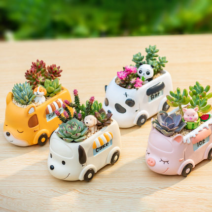 多肉花盆创意幼儿园植物角盆栽可爱小汽车卡通动物装饰送男孩礼物