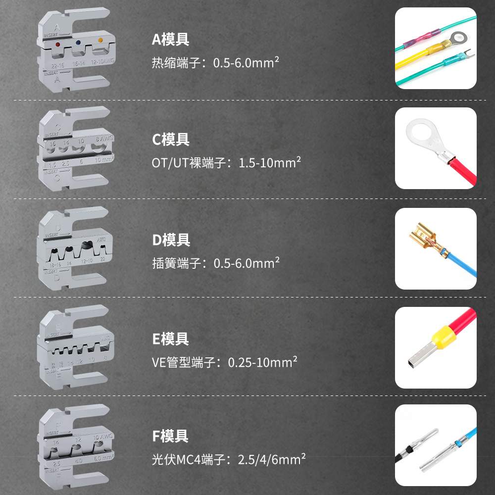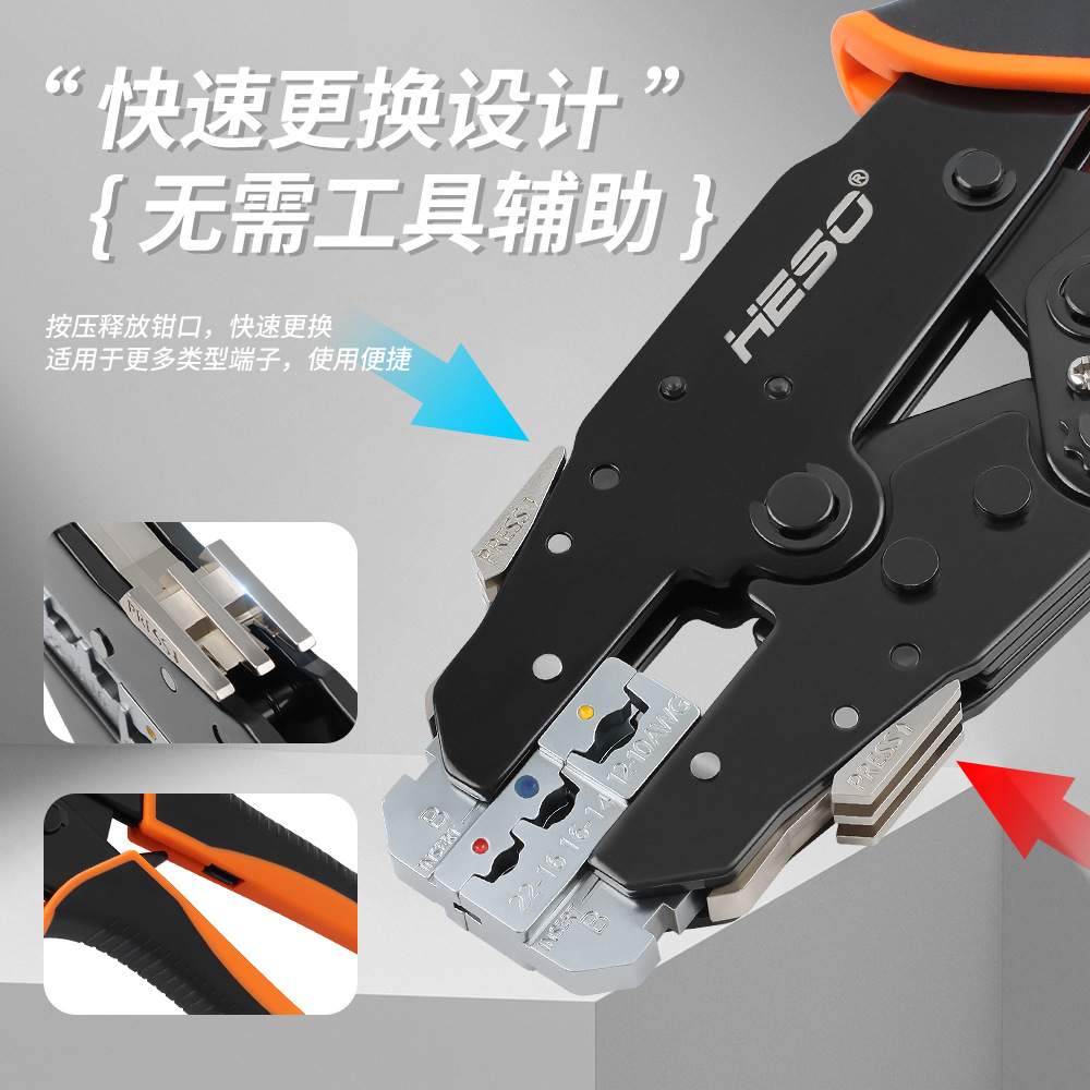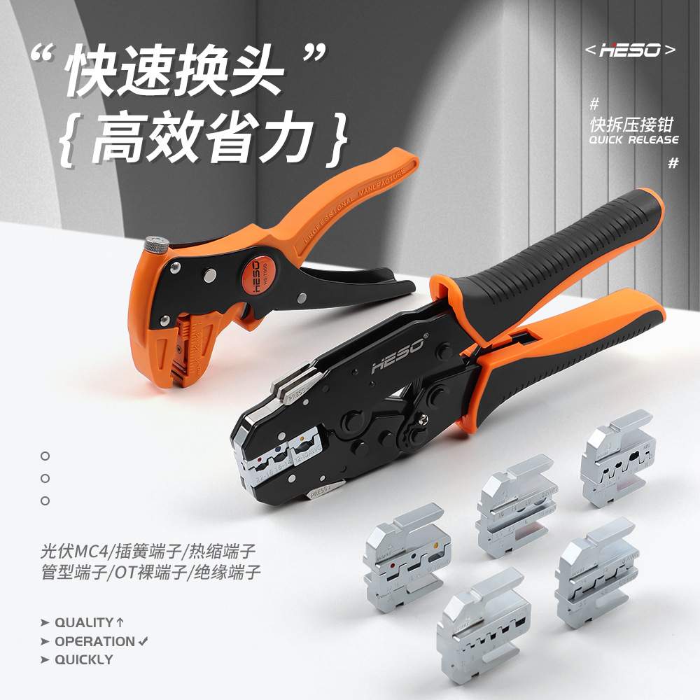 HSV快速换头压线钳套装出口型OT/UT插片光伏插簧管型端子压线钳