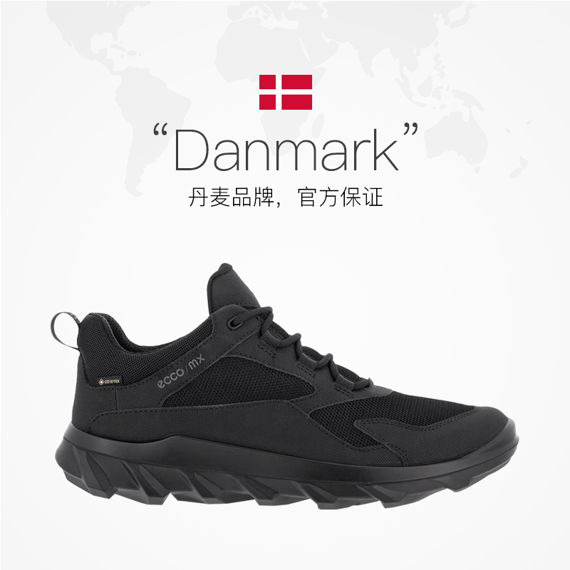 【自营】Ecco/爱步运动鞋男款皮革拼接织物黑色低帮系带休闲鞋